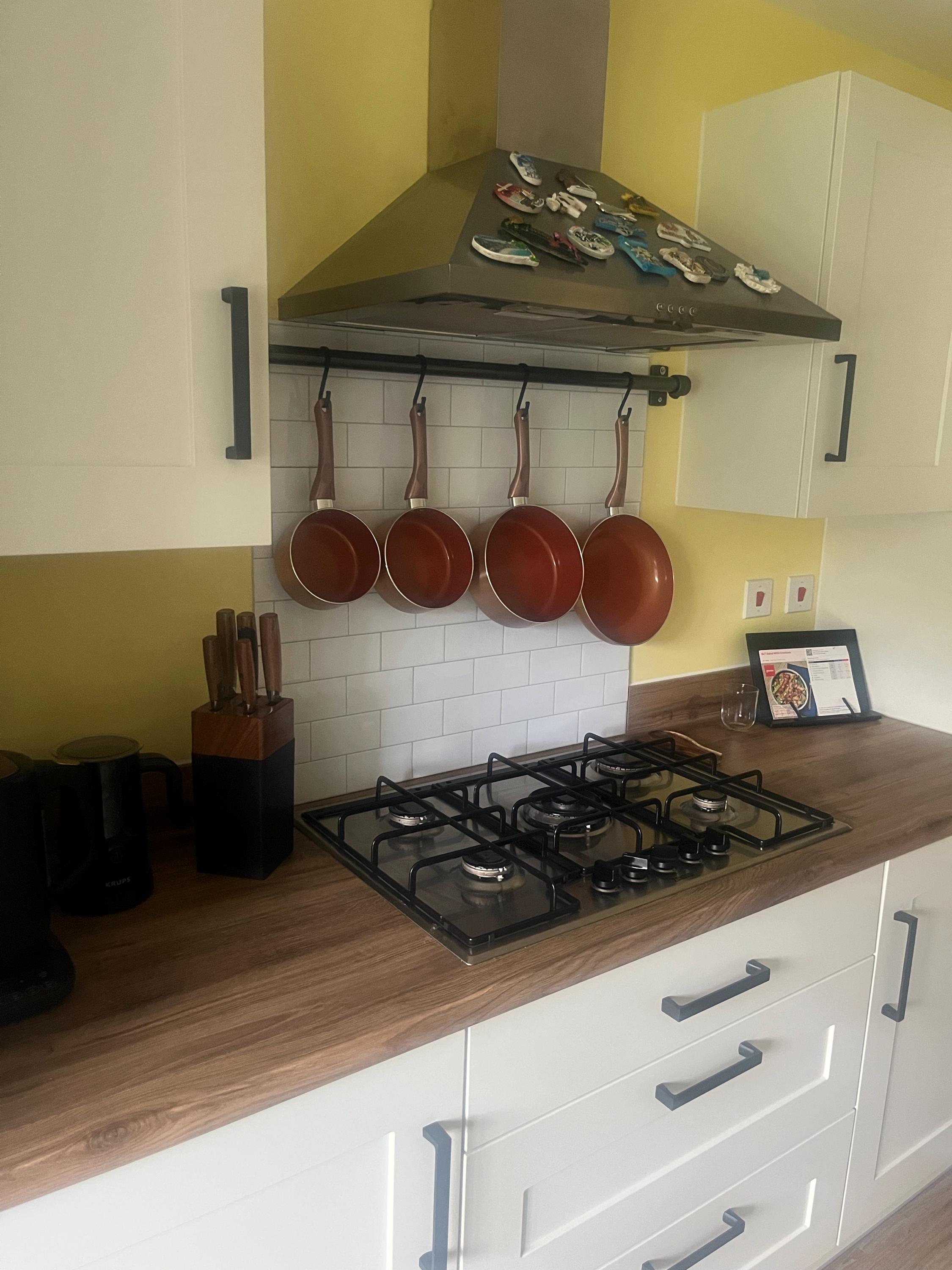 Complete with 2 key clamp fixing brackets and the option to add 6 utensil hooks per rail.