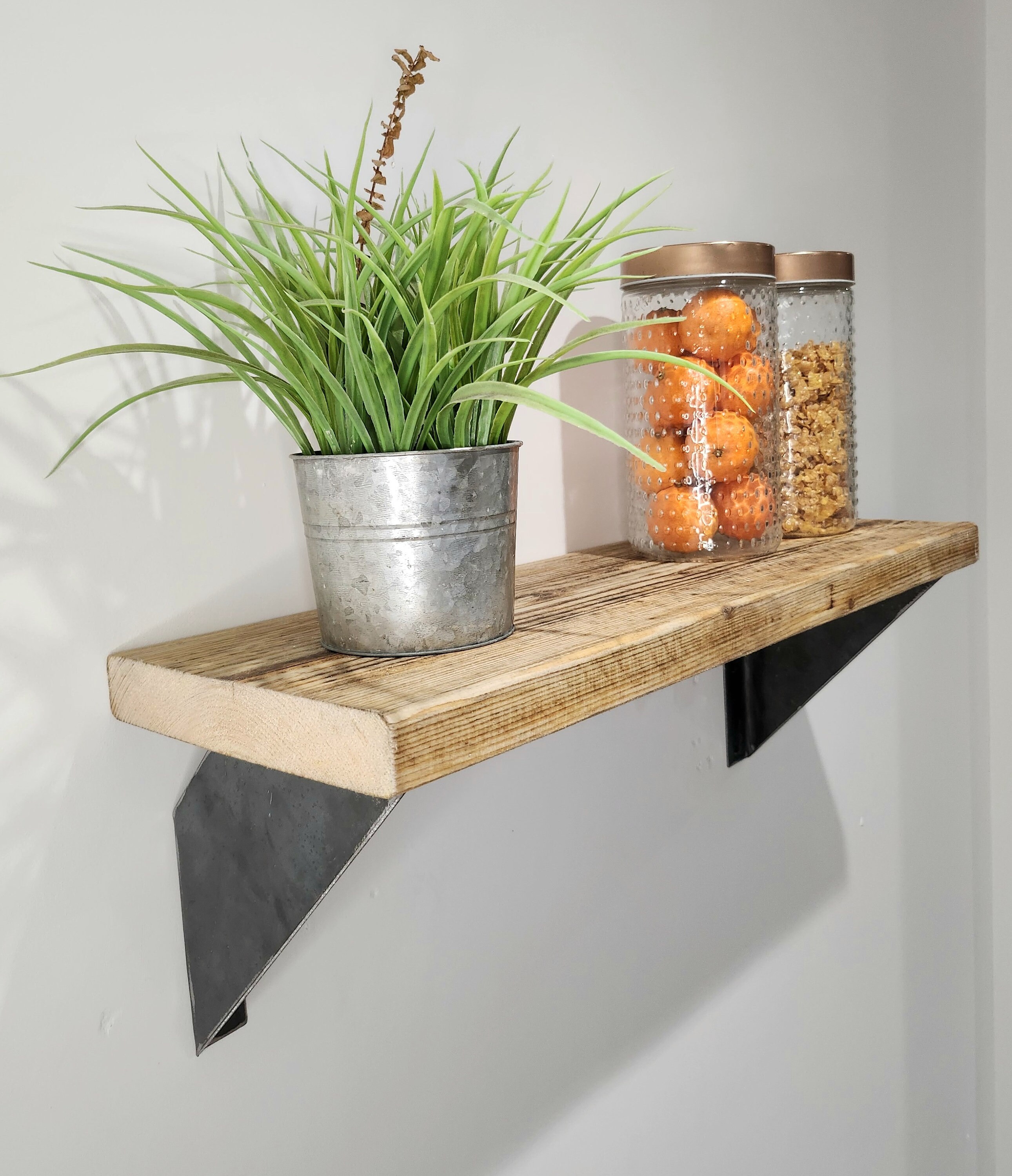 FREE UK DELIVERY | Rustic Shelf & Raw Steel Brackets – Handmade UK Shelf