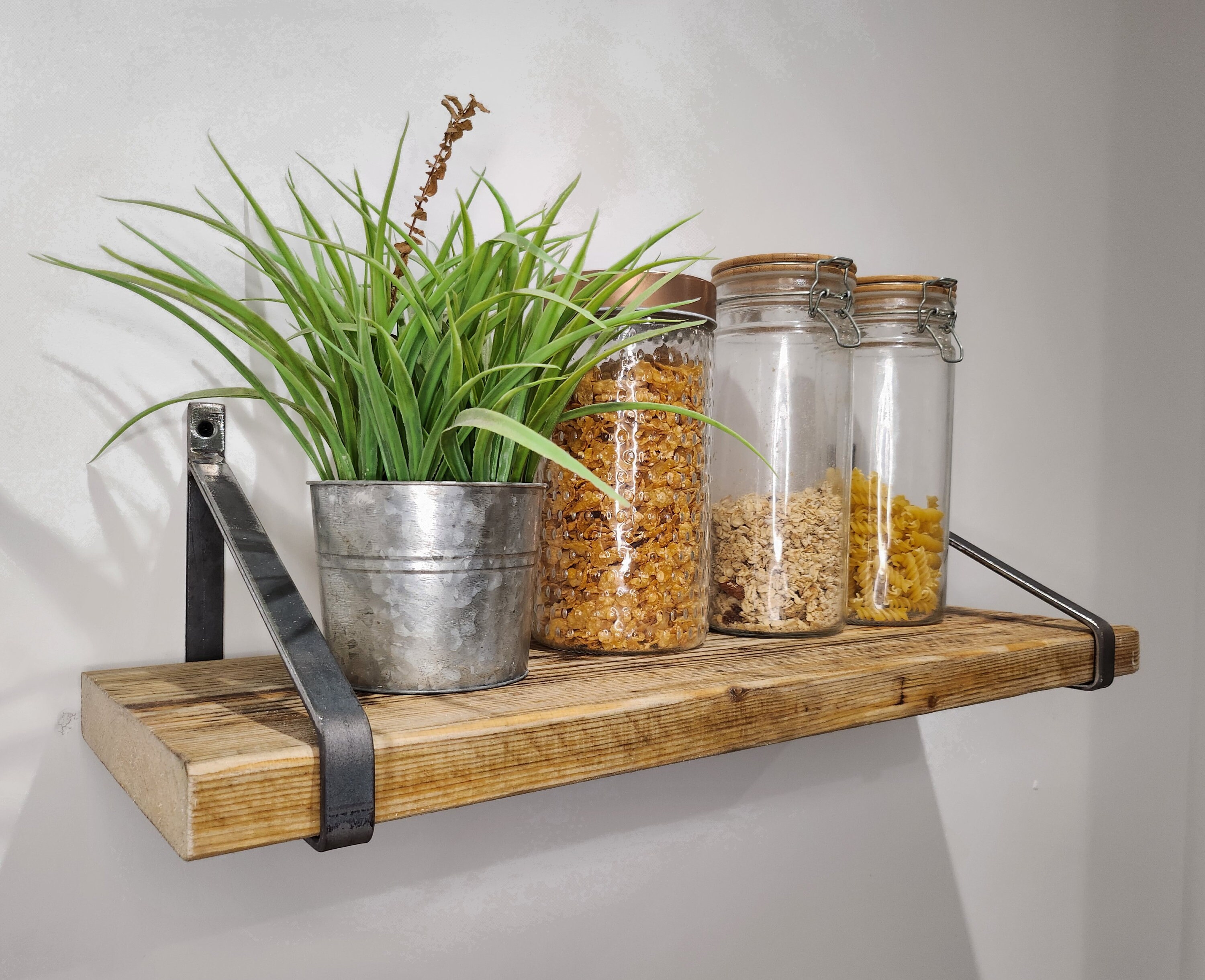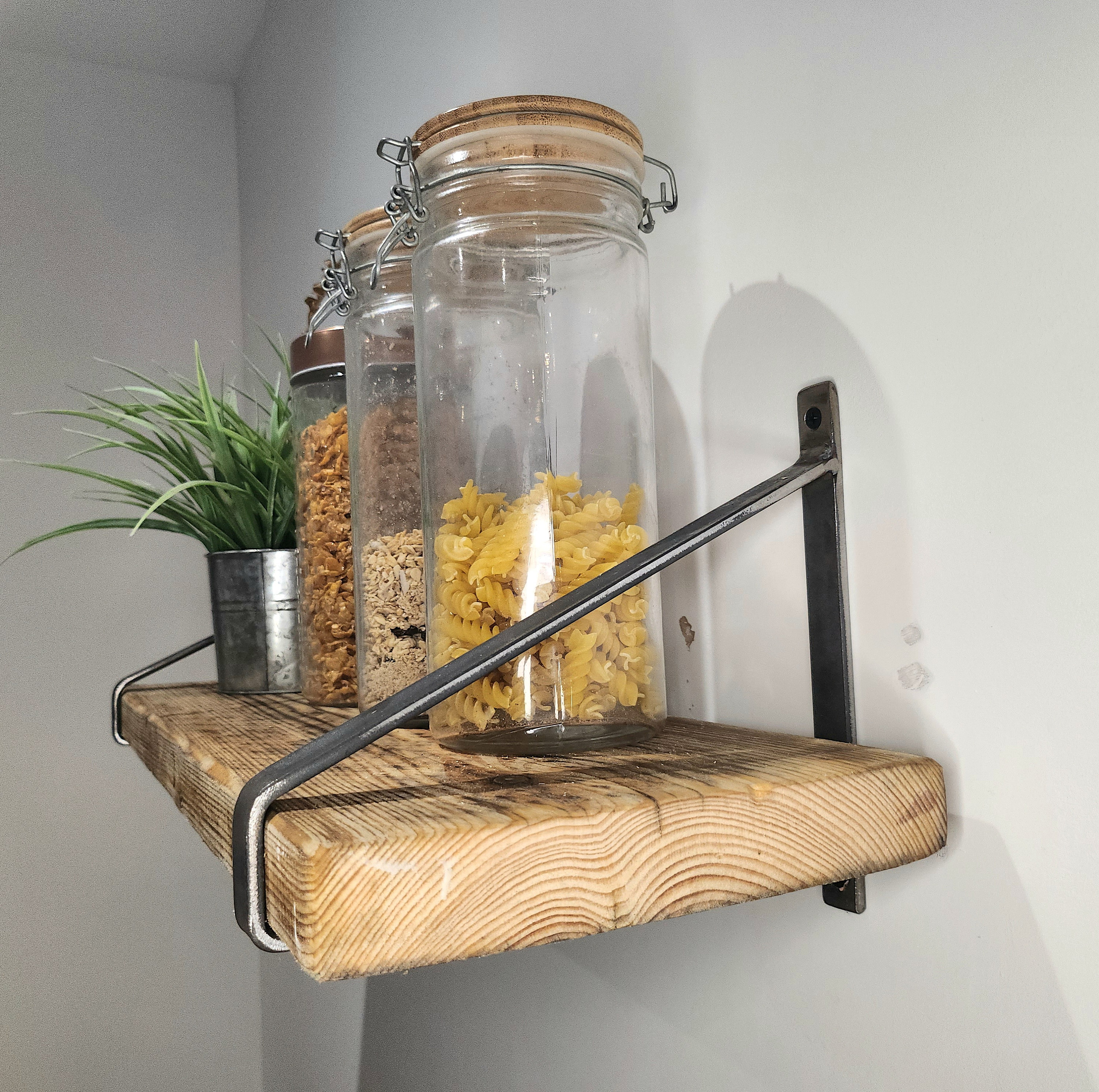 Handmade from heavy-duty steel and finished by hand in the UK, these brackets are ideal for supporting shelves in kitchens, living rooms, workspaces, offices, bathrooms, garages and beyond. Their sturdy triangular design provides excellent weight support, while the raw steel finish adds authentic industrial character to your shelving project.