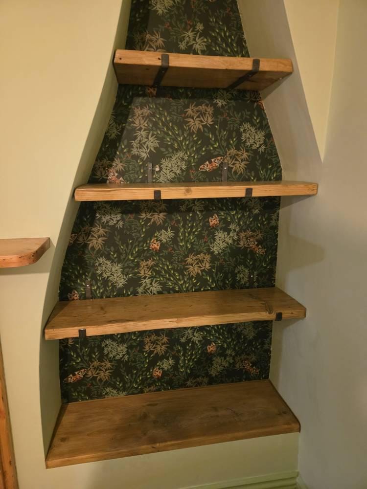 These industrial shelf brackets are handcrafted from raw steel and built to last — perfect for supporting shelves in living rooms, kitchens, bathrooms, bedrooms or any shelving project where strength and style matter.